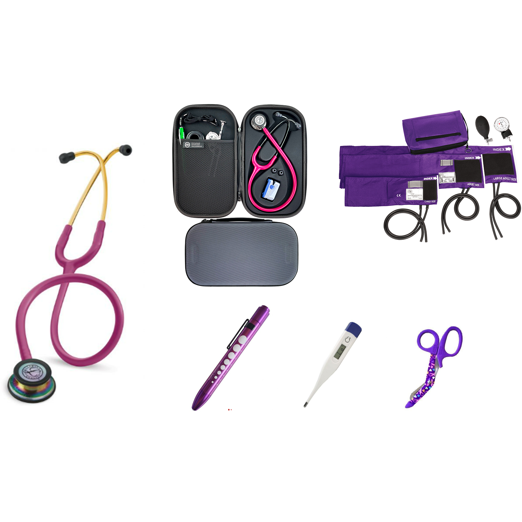 Advanced Nurses Kit - Littmann Classic III Stethoscope Raspberry 5806, Sphyg, Thermometer, Scissors and More!