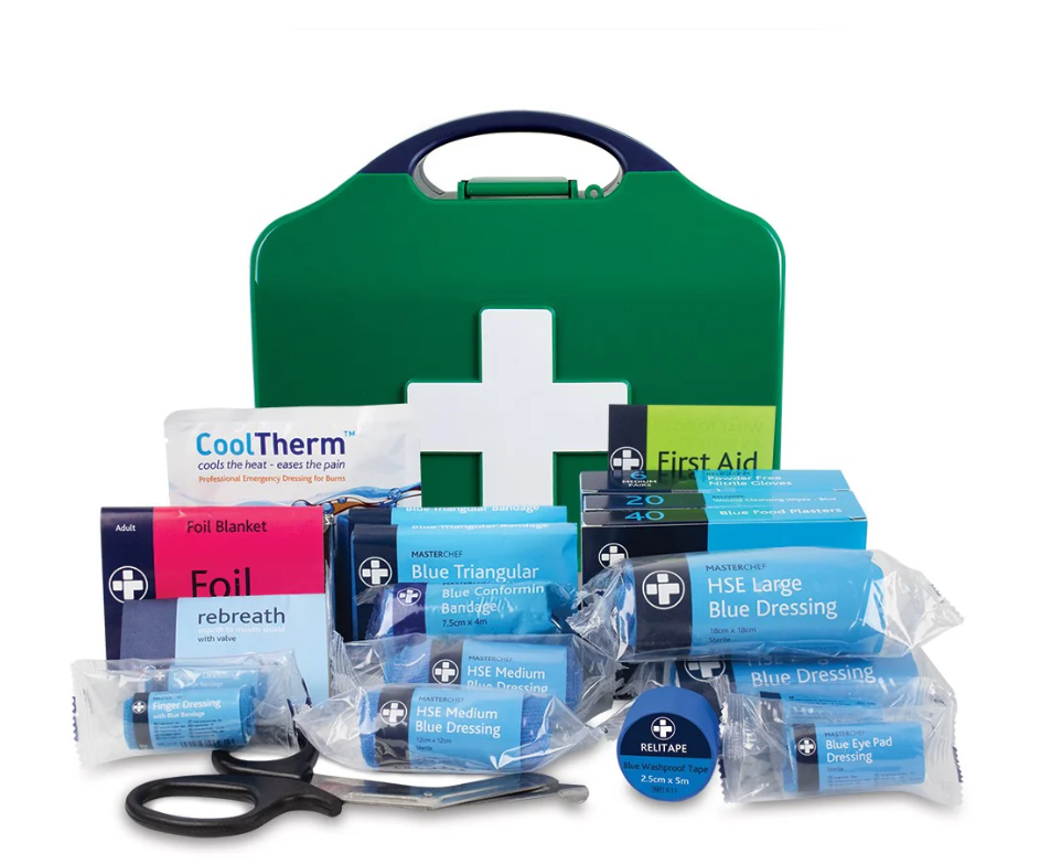 Specifically designed for the food industry and in food preparation areas. Includes integrated wall bracket. First aid kit where every single product, even the dressings and wipes, are all Blue to ensure you meet legal requirements.